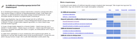 Hasznos link, mely azoknak lesz segítség, akik a szeretnék letenni az Adwords új Képesítőprogramjának vizsgáit. A lapon a jobb oldalon lehet megtalálni az egyes vizsgákhoz tartozó leckéket, szöveges formában.