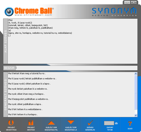 Mint a képen is látható, nincs 2 azonos mondat, szépen dolgozik a program. A „Súgó” gombra kattintva egy kicsit részletesebb leírást is találhatsz a program működéséről.