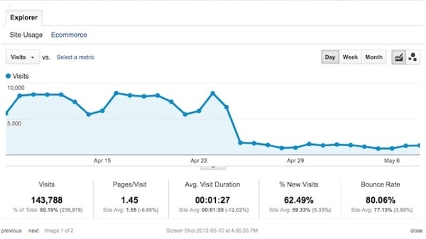 Mint látható, a látogatottság hirtelen, 1 nap alatt zuhant le. Az első napok zavarát még az is fokozta, hogy ekkora esett itthon a hosszú hétvége is, mely általában negatívan hat a honlapok látogatottságára, sokan kimozdulnak otthonról.