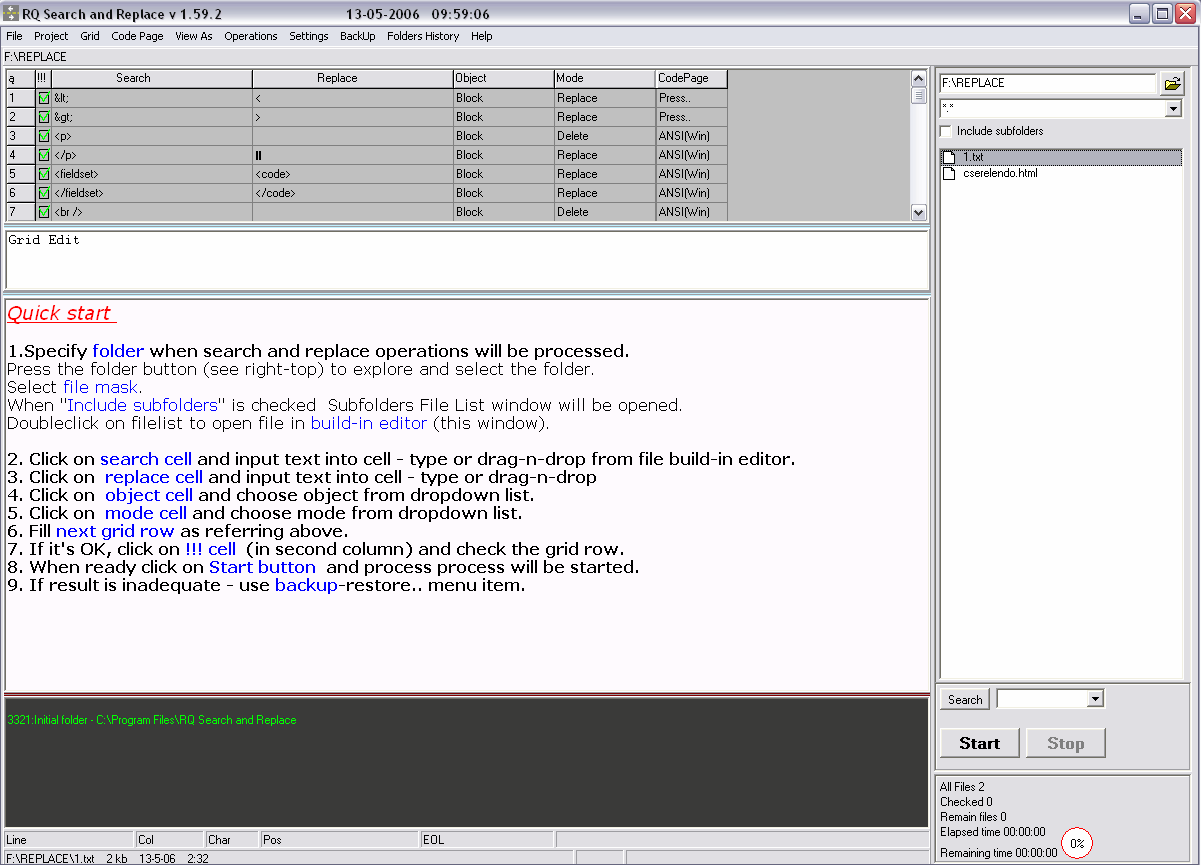Az elmúlt időszakban – mikor a joomla-s tartalmat költöztettem át drupal alá – keresgettem olyan megoldásokat az interneten, amivel viszonylag fájdalommentesen lehetne tetszőleges szövegrészlet cseréket megejteni. Ennek módja elképzeléseim kb úgy történt volna, hogy megadom felsorolásszerűen, mely szövegrészletet mire akarom cserélni, majd a teljes forráskódot bemásolva és gombot megnyomva végrehajtódnak a cserék.