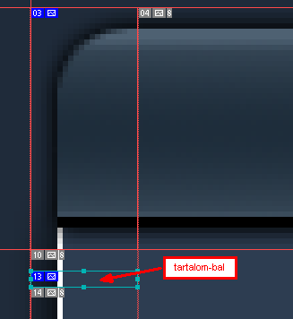 A képen látható módon készíts egy slice-t ami majd a honlap bal oldalát fogja adni háttérképként (neve jelen esetben: "tartalom-bal"), és ugyanennek mintájára a jobb oldalon készíts egy "tartalom-jobb" nevű slice-t.