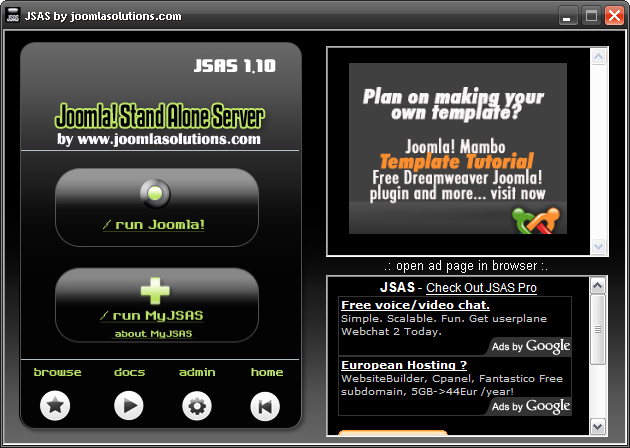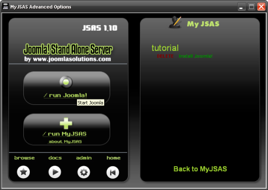 run MyJSAS – Itt tudunk újabb telepítésket indítani, egészen pontosan 5 db-ot.browse – Ezzel böngészhetünk a virtuális meghajtón.