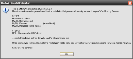 6.) Indítsuk el a telepítést. (admin / My JSAS / duplakikk a néven)