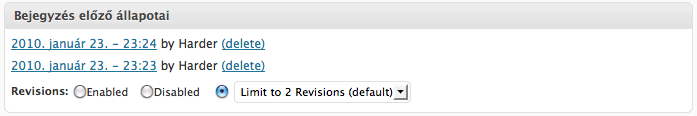 1-1 helyen be lehet állítani, hogy az oldalaknak és a bejegyzéseknek legyen-e – és ha igen – akkor mennyi revision állapota.