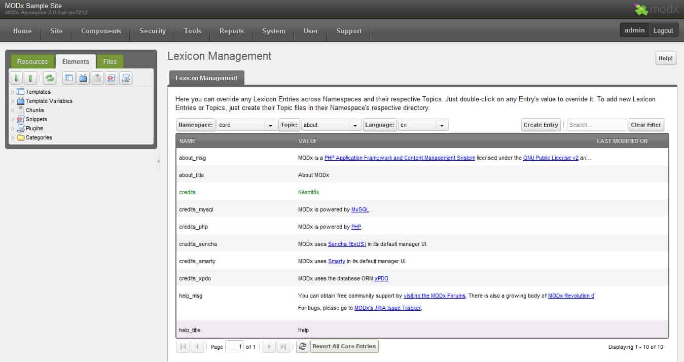 Közbe a MODx fordításán is folyamatosan dolgozom íme néhány kedvcsínálló kép:
