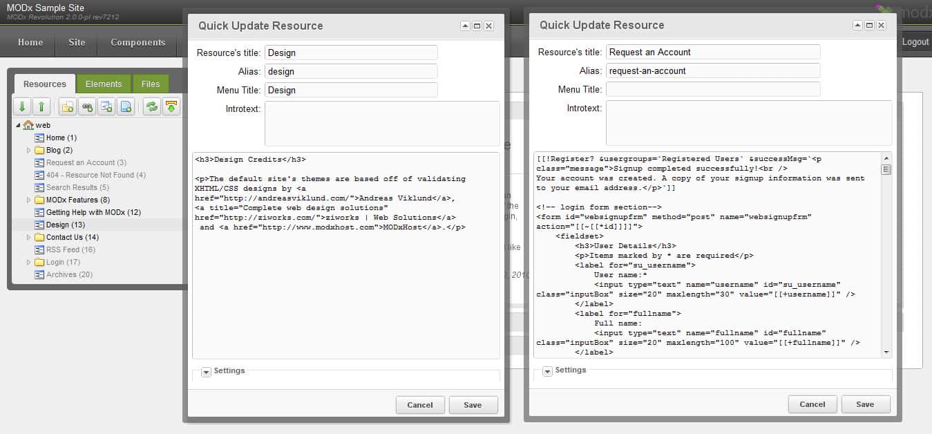 Egyik kedvenc új funkcióm a Quick Update Resources egyszerre akár több tartalmat is tudok szerkeszteni külön ablakba, hihetetlen hogy milyen jó működik az ExtJS, tökéletes választás volt.