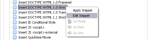 A snippet szerkesztése