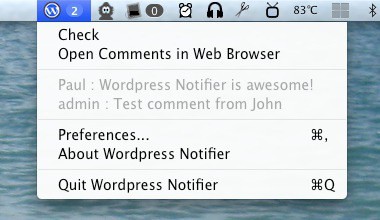 Lehet, hogy ezt inkább a mactippek.com oldalra kellene kitennem, de a WordPress miatt itt is helye van .. no mindegy, a lényeg, hogy aki WordPress blogot üzemeltet és Mac OS X oprendszerrel dolgozik, annak figyelmét felhívnám az alábbi kis programra: WordPress Notifier for Mac OSX