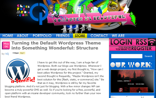 Egy egyszerü, de jópofa, szines 2 oszlopos design a smashingmagazine támogatásával: WordPress.Fun